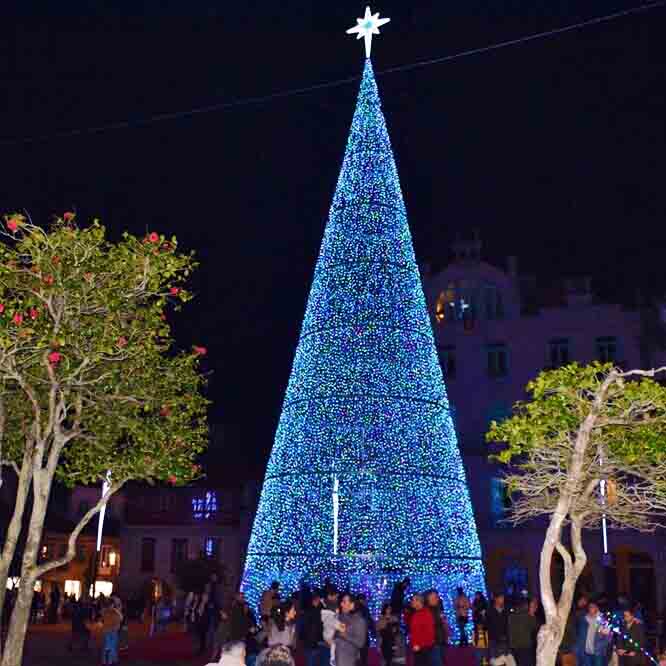 Es la auténtica estrella que atrae a miles de personas, por sus grandes dimensiones 31 metros, por su sistema de iluminación LED RGB que va cambiando de color en policrometría y con acceso al interior por sus grandes puertas, así es el Árbol de Navidad 31